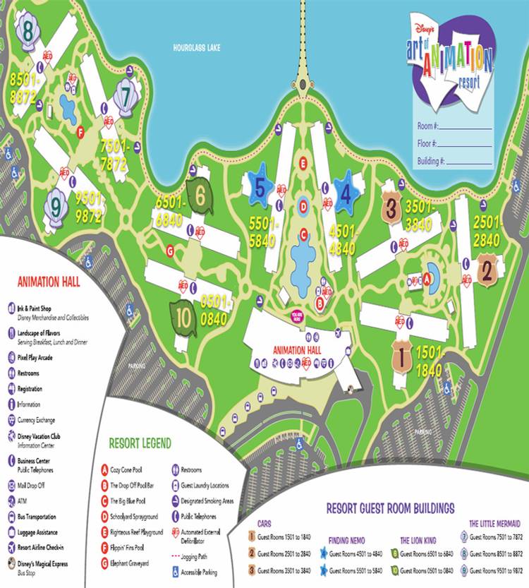 It has both family suites and standard rooms. Creation and use of animated maps today. ANIMATION HALL HOURGLASS LAKE artANlQAT10N resort PARKING G CARS ROOM BUILDINGS THE LION KING Guest Rooms 6501 to 6840 Guest Rooms 0501 to 0840 7 8 9 THE.